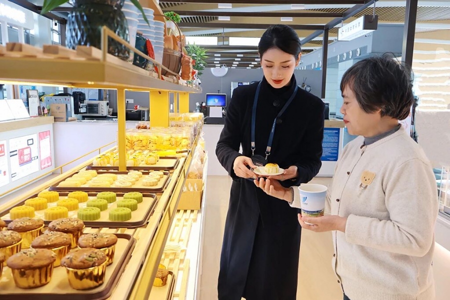 为让老年旅客感受专属节日仪式感,机场在候机楼航食专营店附近设立专属活动区,60周岁及以上老年旅客凭本人身份证与当日登机牌,即可免费领取定制重阳糕一份,现场还提供了多种温润茶饮,供老年旅客任意选择,暖胃更暖心。此外,工作人员还在活动区域实时为有需求的老年旅客拍照记录,留存旅途与节日交织的温馨瞬间。