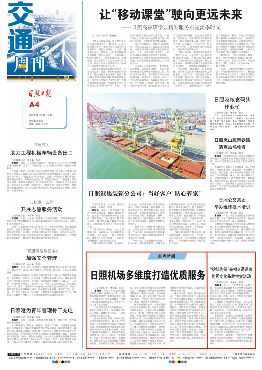 日前,山东省机场管理集团日照机场围绕2025年“民航服务提振消费年”主题活动要求,依托“飞悦山河”服务品牌建设,持续打造多维度的优质服务,完善空中门户,便利旅客出行。