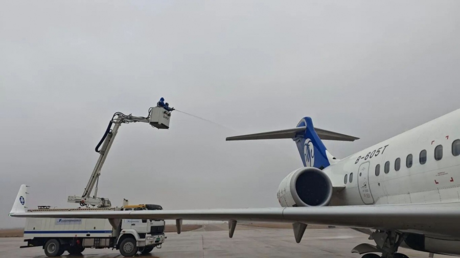 在气象部门发布冷空气预警后,日照机场机务保障部便提前谋划、主动作为,第一时间组建C909专项保障小组。保障团队严格依据该机型维修技术规范,结合前期专项演练总结的除防冰关键风险点与作业要点,快速制定针对性除防冰实施方案,明确人员职责、作业流程及安全管控要求,为保障工作的顺利推进筑牢基础。
