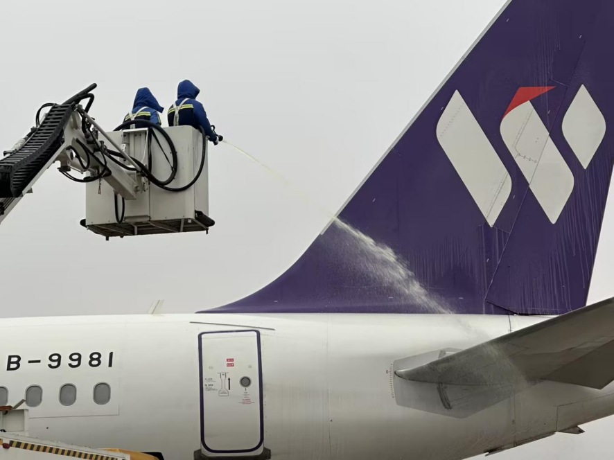 寒潮大风来临前,提前完成航空器除冰、道面除雪车等检修与调试,协调装载机备勤,储备航空器及道面除冰液43.4吨,储备融雪盐2吨,防滑砂10立方。严格执行特殊天气巡查机制,加固机坪设施设备24处,加密供电线路、室外箱变、柴油发电机等电力设施设备巡查。开展全场水暖管网排查,落实设备防寒保温,确保极端天气下能源供应稳定。
