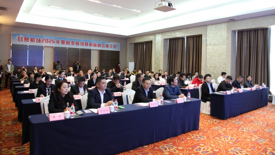 4月23日,日照机场2026年夏航季航线暨航旅融合推介会圆满举行。日照市交通运输局、日照市文化和旅游局、省机场管理集团市场发展部和东方航空、南方航空、海南航空、长龙航空、华夏航空、多彩贵州航空、西部航空、武汉机场、临沂机场、包头机场、旅行社以及部分景区及新闻媒体代表齐聚一堂,共话航空发展、共促航旅融合。