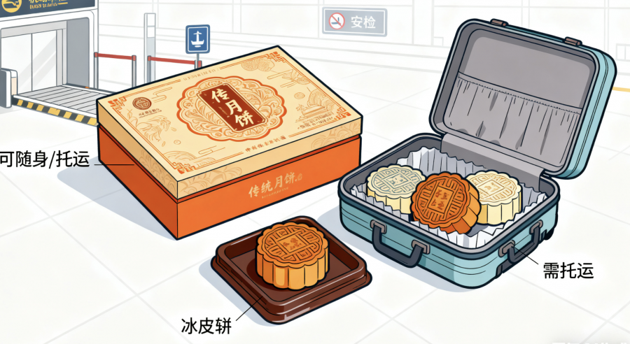 月饼礼盒暗藏玄机。中秋佳节,月饼自然是出行伴手礼的热门选择。传统固态月饼,只要包装内不含金属刀具等限制物品,且尺寸符合随身携带行李规格,乘坐国内航班时,随身携带或托运皆可;若礼盒中藏有金属刀具,那就只能办理托运了。新式冰皮月饼、冰淇淋月饼,因保鲜需求常配有冰袋,这就必须提前办理托运手续 。