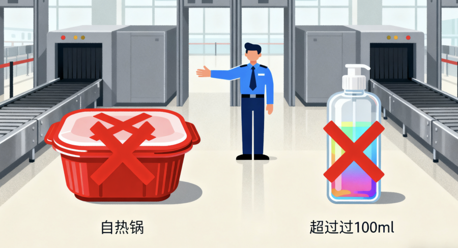 自热食品勿上机。自热火锅、自热米饭这类自热食品,因运用生石灰遇水产生高温的原理加热食物,存在安全隐患,禁止随身携带和托运。