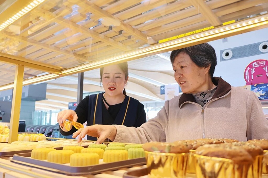 为让老年旅客感受专属节日仪式感,机场在候机楼航食专营店附近设立专属活动区,60周岁及以上老年旅客凭本人身份证与当日登机牌,即可免费领取定制重阳糕一份,现场还提供了多种温润茶饮,供老年旅客任意选择,暖胃更暖心。此外,工作人员还在活动区域实时为有需求的老年旅客拍照记录,留存旅途与节日交织的温馨瞬间。