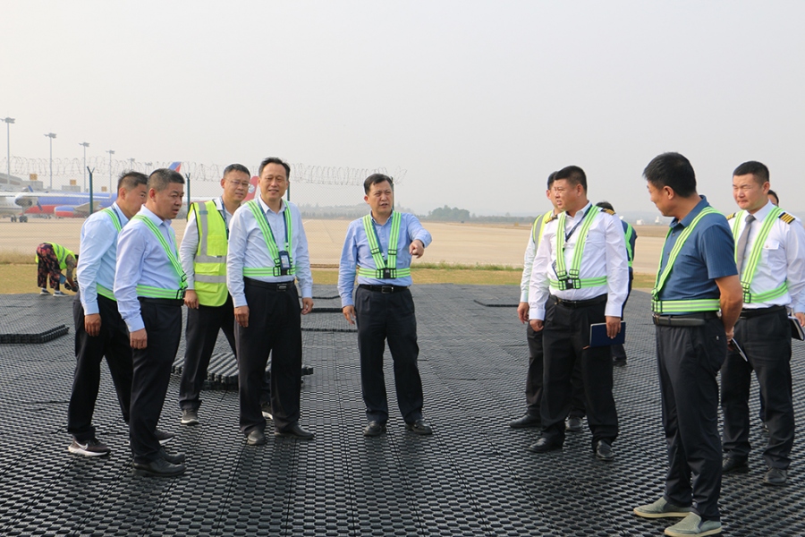 高明君首先与各航校开展专题座谈,详细了解企业的运营情况和发展需求,尤其是目前飞行员培训市场低迷各航校财务紧张的状况。随后,前往通航机坪建设现场,实地查看强化草地机坪铺设和建设进度。