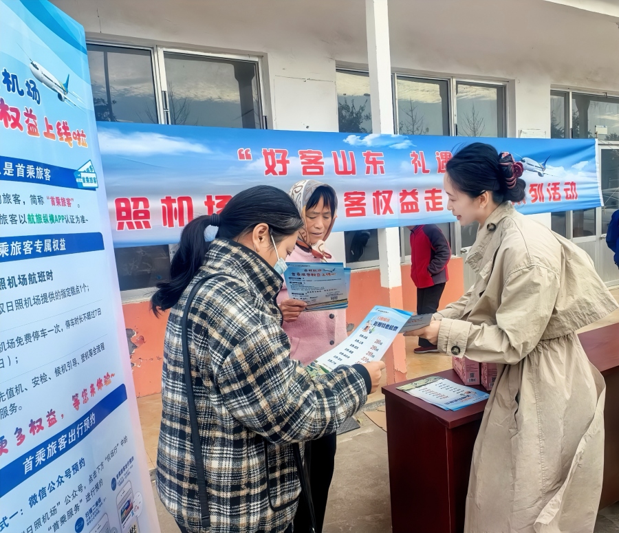 近日,山东省机场管理集团发布“好客山东 礼遇飞翔”首次乘机旅客服务标准及权益,日照机场首乘旅客权益涵盖行前预约、机票补贴、往返机场地面交通减免、优先值机、快速安检、候机引导等66项细化举措。为进一步扩大产品影响力,推动更多旅客选择飞机出行,10月20日,日照机场赴后村镇山字河村,开展首乘旅客权益系列宣传活动。